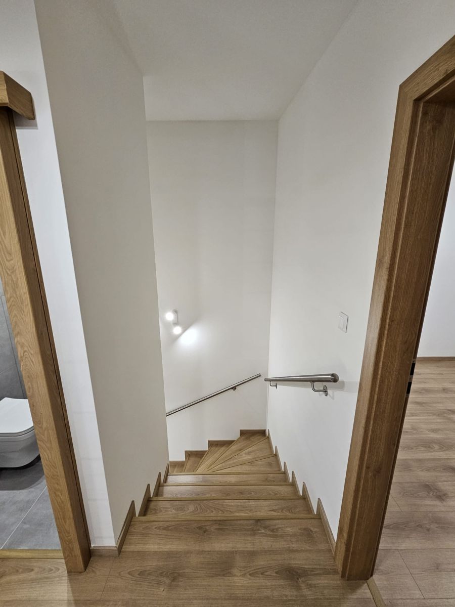 • Na poschodí okrem dvoch izieb, samostatného WC, využijete aj luxusnú galériu s priamym výstupom na balkón o veľkosti 3 m2, ktorý je ďalším neoceniteľným doplnkom ku komfortnému bývaniu.